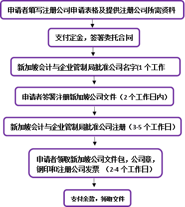 新加坡會(huì)計(jì)與企業(yè)管制局是新加坡公司注冊(cè)的唯一的主管與注冊(cè)機(jī)構(gòu)。所有待注冊(cè)的公司都 必須向會(huì)計(jì)與企業(yè)管制局提交注冊(cè)申請(qǐng)并等待審核批準(zhǔn)。待注冊(cè)的公司經(jīng)新加坡會(huì)計(jì)與企業(yè) 管制局批準(zhǔn)后,方表示在新加坡公司法 50 章下注冊(cè)成功。